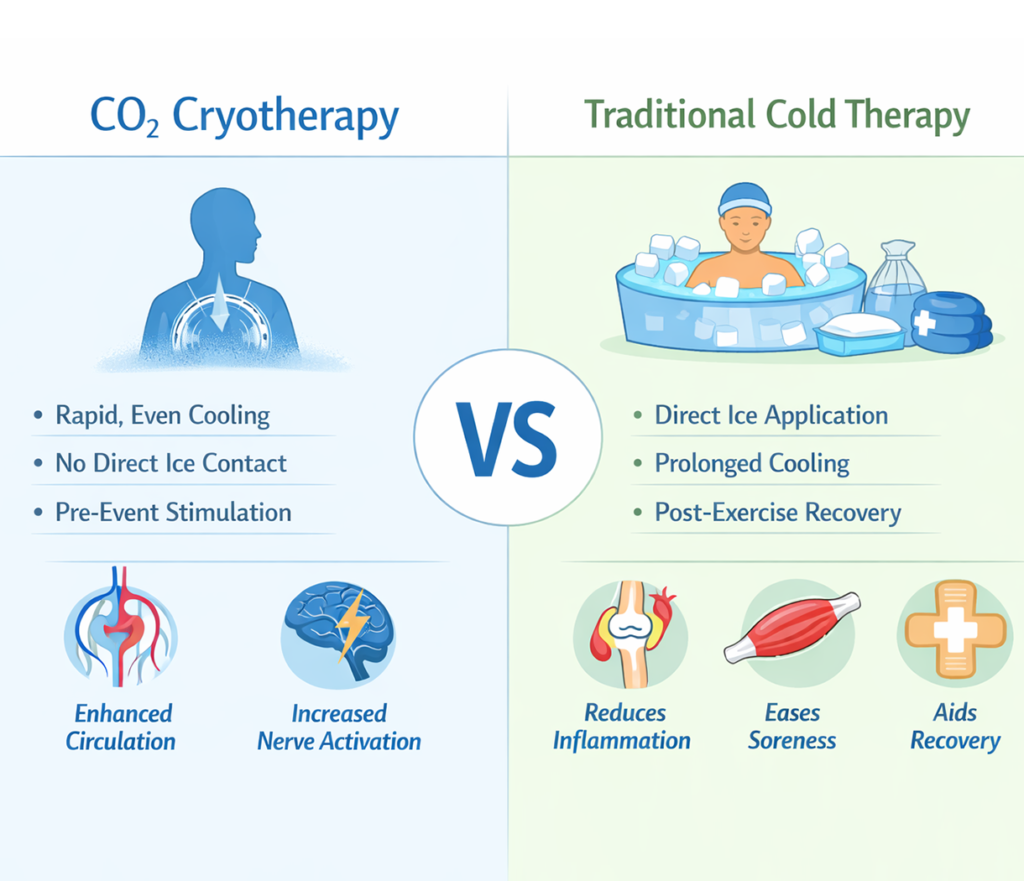 Before diving into its application for pre-event warm-ups, it’s essential to understand the fundamentals of CO₂ cryotherapy and how it differs from traditional cold exposure techniques.