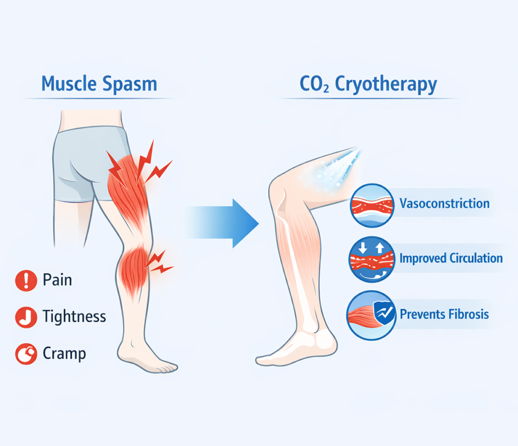Explore how CO₂ cryotherapy alleviates muscle spasms, improves circulation, and prevents fibrosis for athletes and patients.